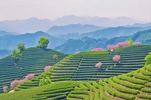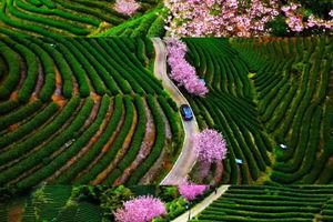 樱花搭配茶田依山势一路延绵