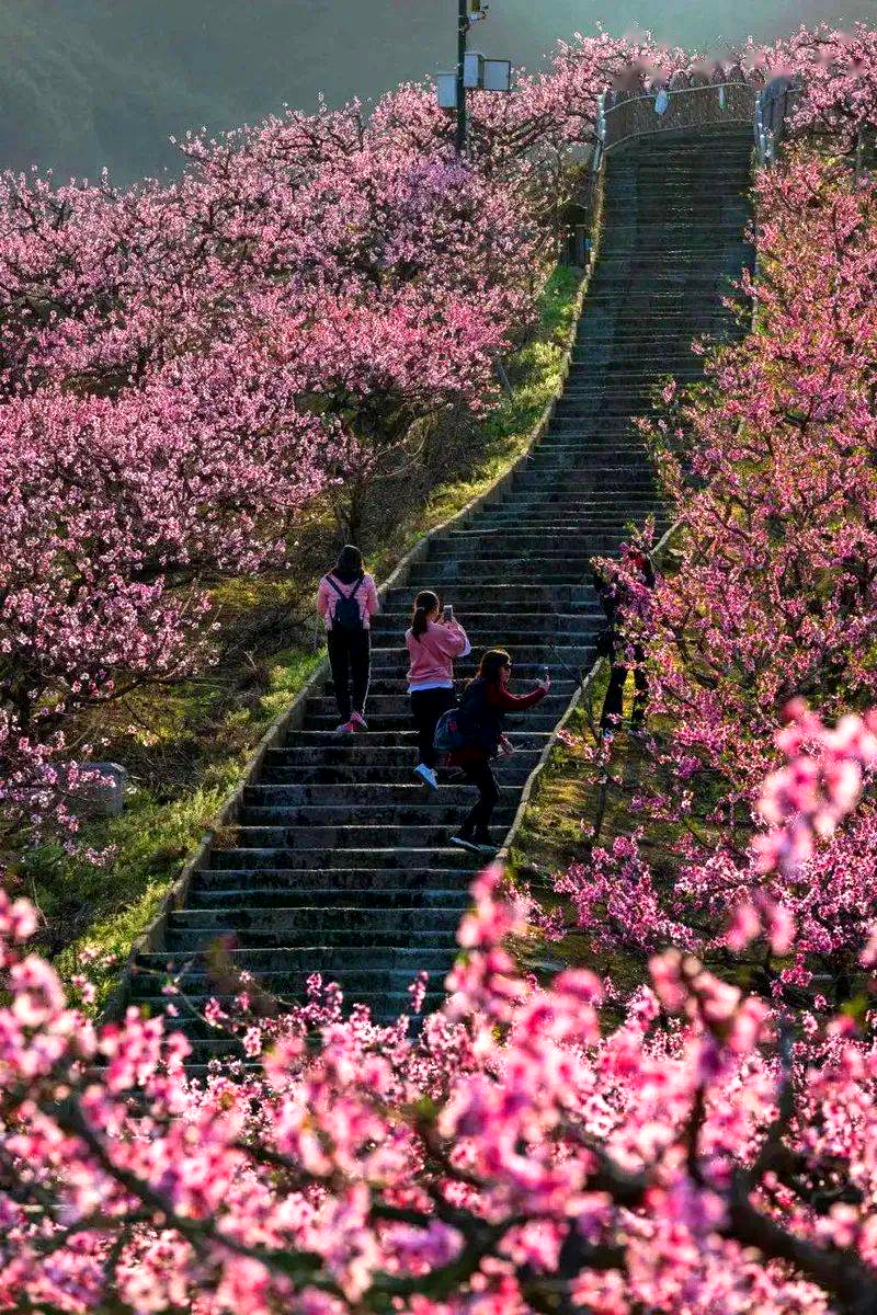曰岭古道—石阶上的春天曰岭古道由鹅卵石铺成,两侧是密密的桃林。春风一吹,花瓣簌簌落下,铺成一条“桃花毯”。