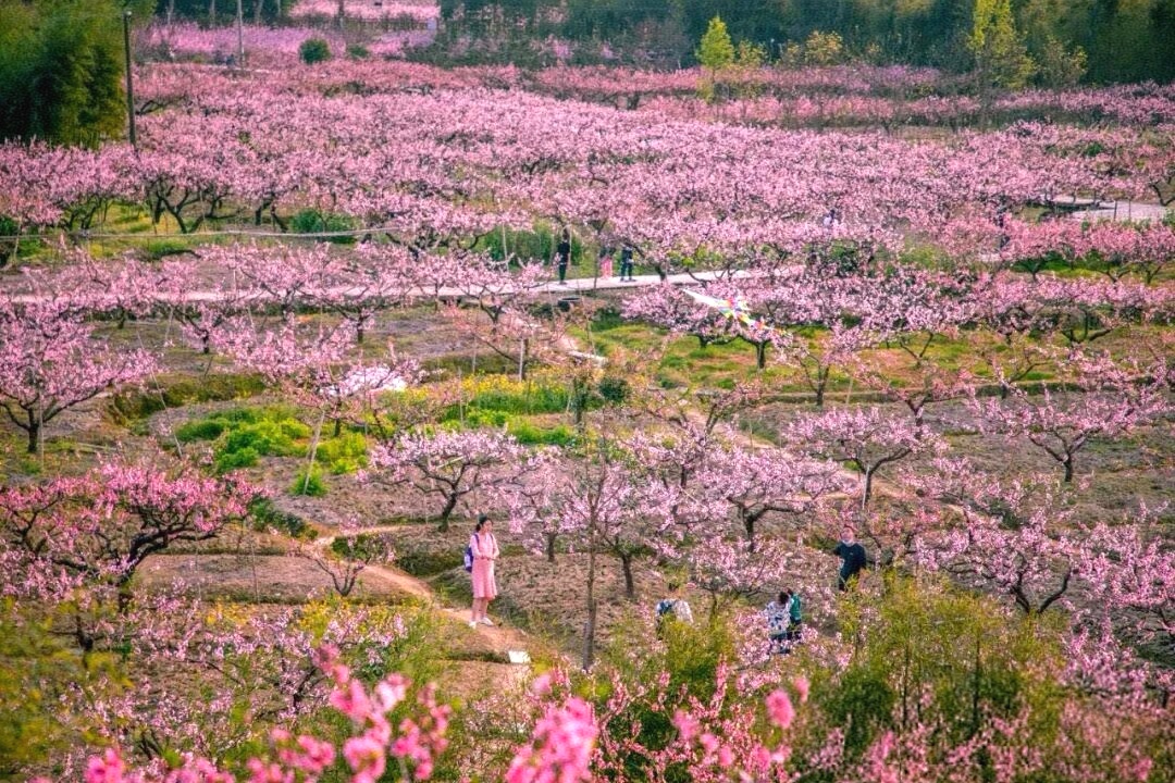 奉化有着"中国水蜜桃之乡"的美誉,每年3月~4间,在"天下第一桃园"的萧王庙街道,万亩桃花漫山争艳,而在桃花烂漫丛间。