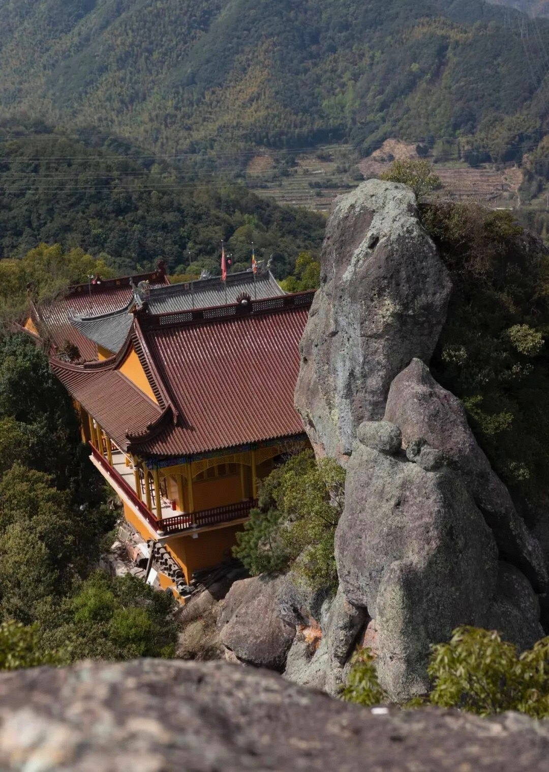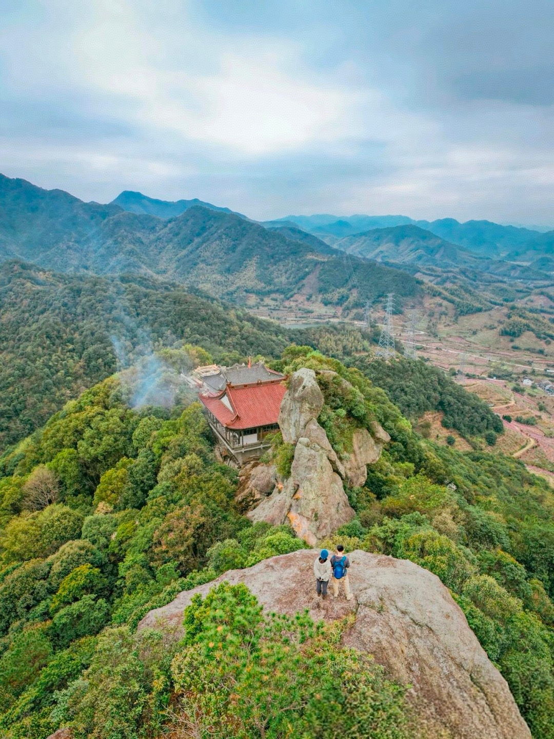 山峦重重叠叠,谷峰相映成趣,风景秀丽壮观。在峰顶鸟瞰,田野、村庄星罗棋布;河溪、山脉纵横交错;道路婉延曲折,美景尽收眼底。