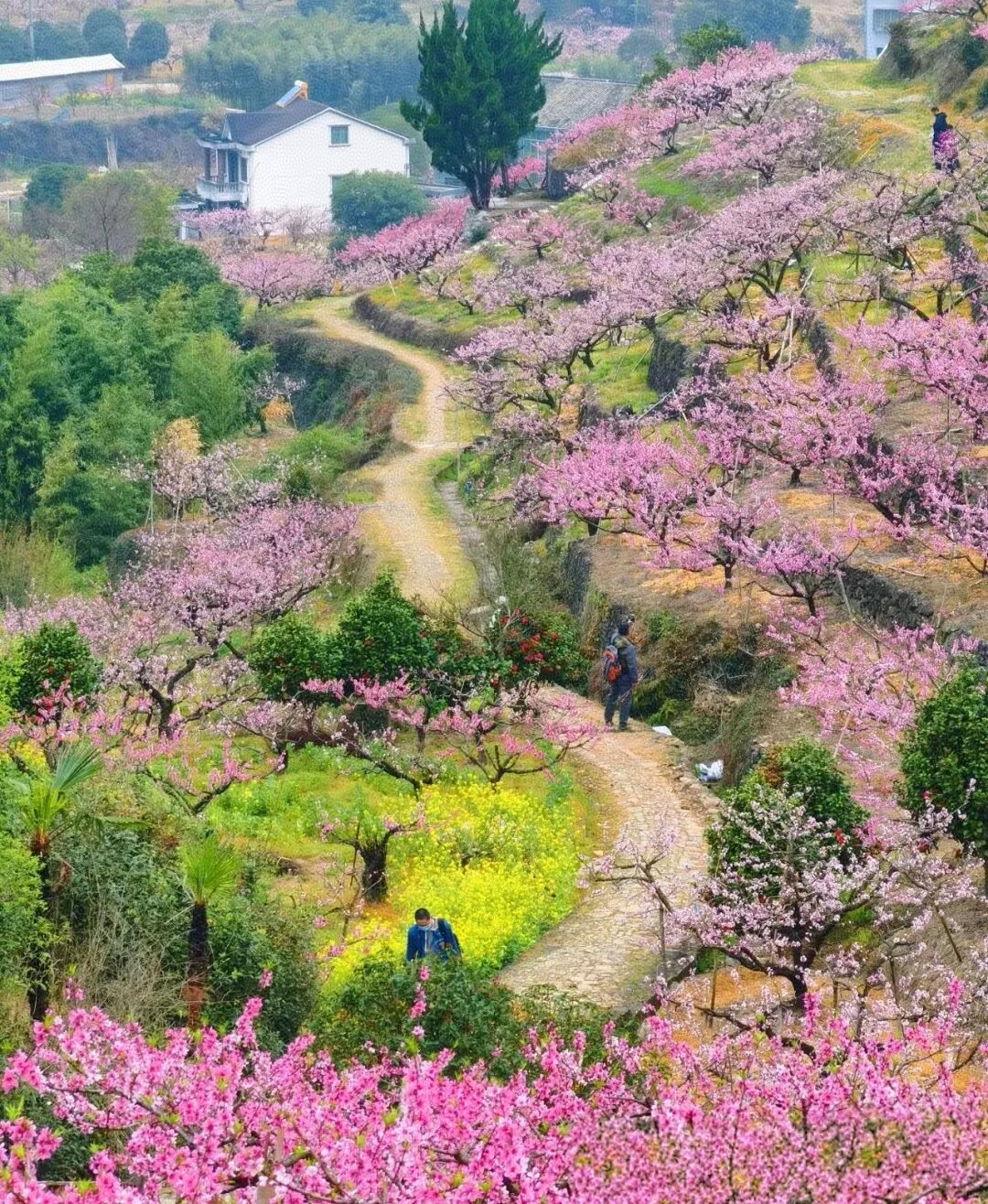 除了桃花,古道经过的地方还有樱花,玉兰,油菜等春季花卉,十里徒步路线走下来,脑海里不禁会浮现“等闲识得东风面,万紫千红总是春”这句古诗,所以,这又何尝不是一条“古诗之路”呢!